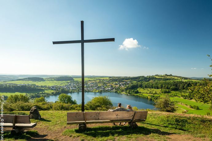 Der 312 km lange Eifelsteig ist einer der beliebtesten deutschen Wanderwege. Er verbindet die alte Grenzstadt Aachen mit dem römischen Trier und durchquert dabei die Eifel von Nord nach Süd. Rechts und Links dieses Premiumwanderweges gibt es Vulkaneifel-Pfade, die Halbtages- und Tagestouren ermöglichen. Urwüchsige Landschaftsbilder mit mächtigen Felsen, plätschernden Bächen, Wälder und Wiesen, Höhlen, Vulkane und Maare sind ständige Begleiter auf dem Eifelsteig, der auch abschnittsweise bewältigt werden kann. (eifelsteig.de)
