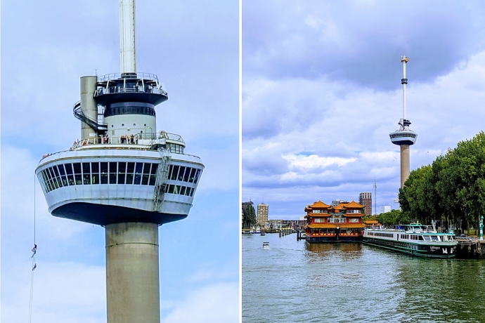 Wo hat man die beste Aussicht auf Rotterdam? Klar, von oben!  Mit einer Höhe von 185 Metern ist der Euromast der höchste Aussichtsturm der Stadt. Unterhalb der Aussichtsplattform lässt sich die Fernsicht vom Restaurant aus 96 Meter Höhe genießen. Wer mehr Nervenkitzel sucht, kann sich aus 100 Meter Höhe abseilen lassen. Bei dieser Aktion steigt der Adrenalinspiegel garantiert an. (von Mai bis September möglich).