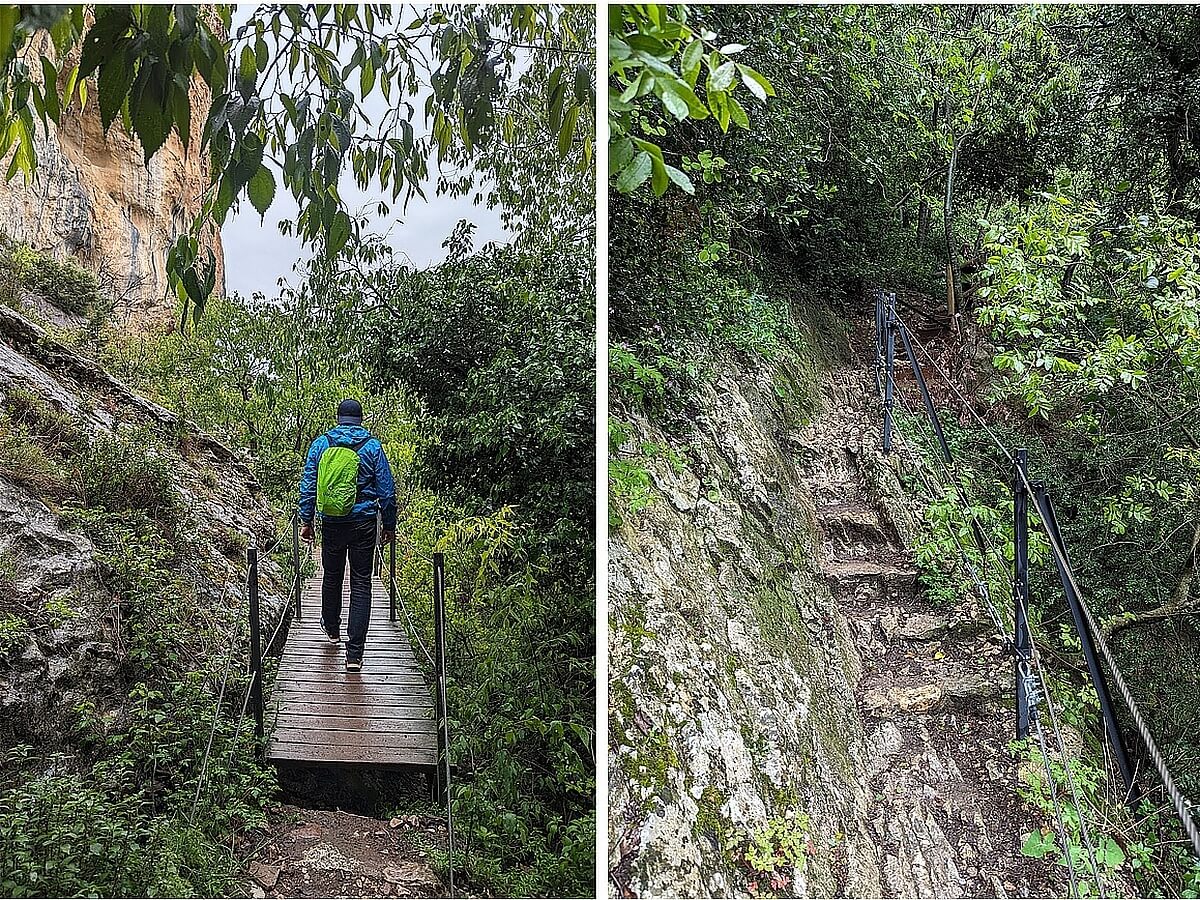 Der Schluchtenweg ist nicht sehr schwierig, aber man sollte gut zu Fuß sein und festes Schuhwerk tragen, denn er ist teilweise steil und unwegsam, aber stets gut gesichert. Vorbei an gigantischen Felswänden und üppiger Vegetation führen Treppen, Felsen und Holzstege tief hinab. Höhle Schlucht des Rio Vero