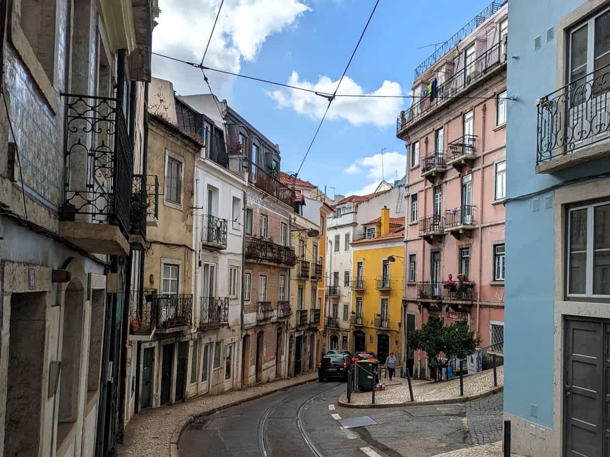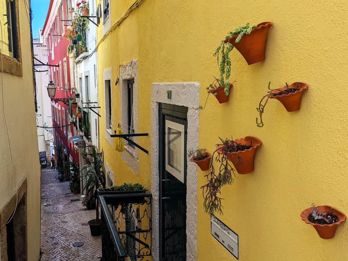 Und dann ist da Alfama, das älteste Viertel Lissabons, das wir an unserem zweiten Tag durchstreiften. Ein Gewirr aus engen Gassen, Treppen und kleinen Plätzen, zieht sich bis zur Burg São Jorge hinauf. Die Häuser stehen dicht beieinander, Wäsche flattert zwischen den blumengeschmückten Balkonen, und die Zeit scheint stillzustehen. Steile Treppenwege + verwinkelte Gassen in Alfama