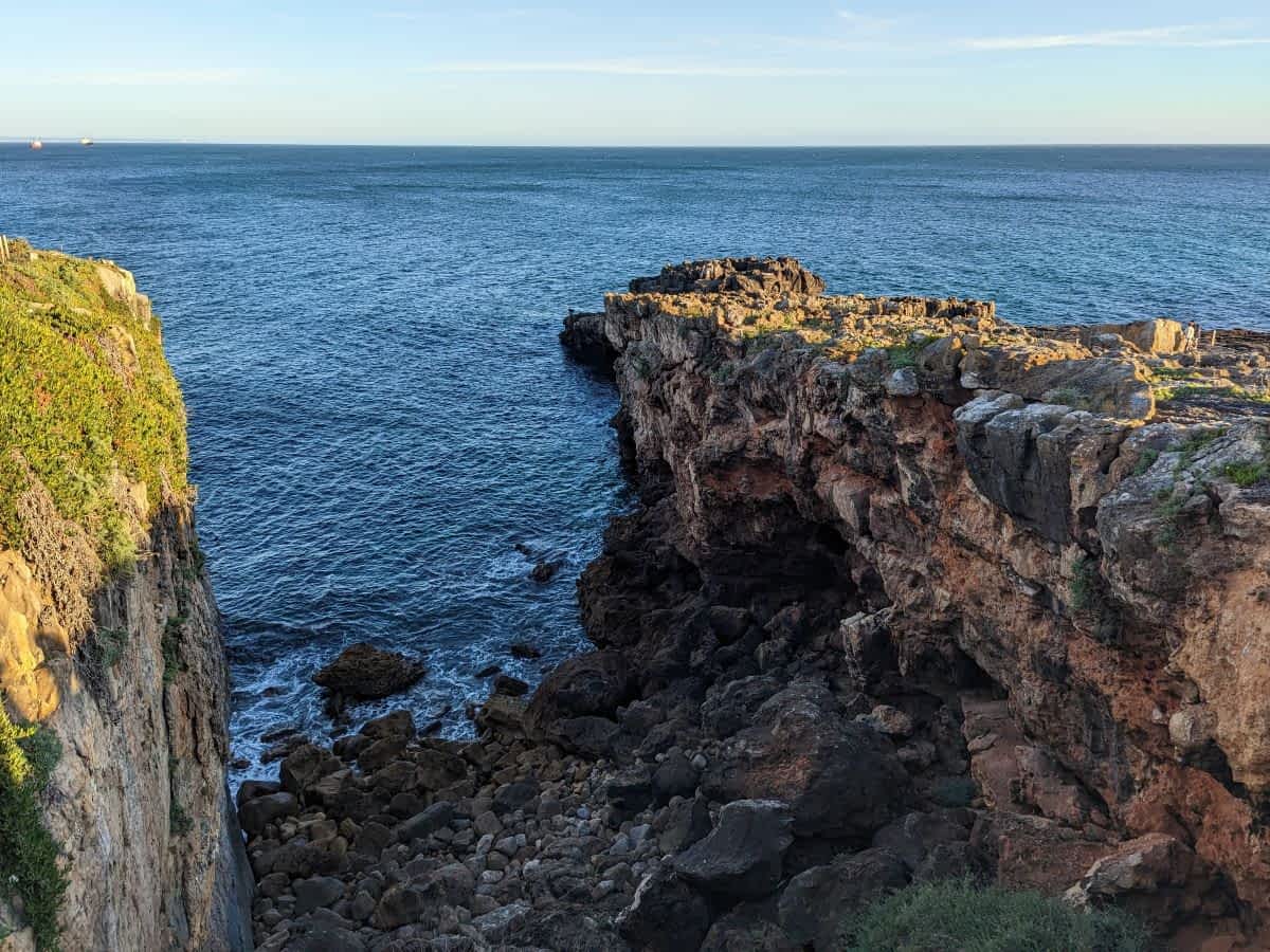 Etwas westlich des Zentrums befindet sich die spektakuläre Klippenformation Boca do Inferno („Höllenschlund“). Hier hat das Meer über Jahrtausende eine Höhle in die Felsen geschlagen. Wir können nur erahnen, wie bei starkem Wellengang das Wasser mit lautem Getöse in die Felsspalte peitscht. Die Klippen erreicht man übrigens von Cascais gut zu Fuß über einen malerischen Küstenweg.