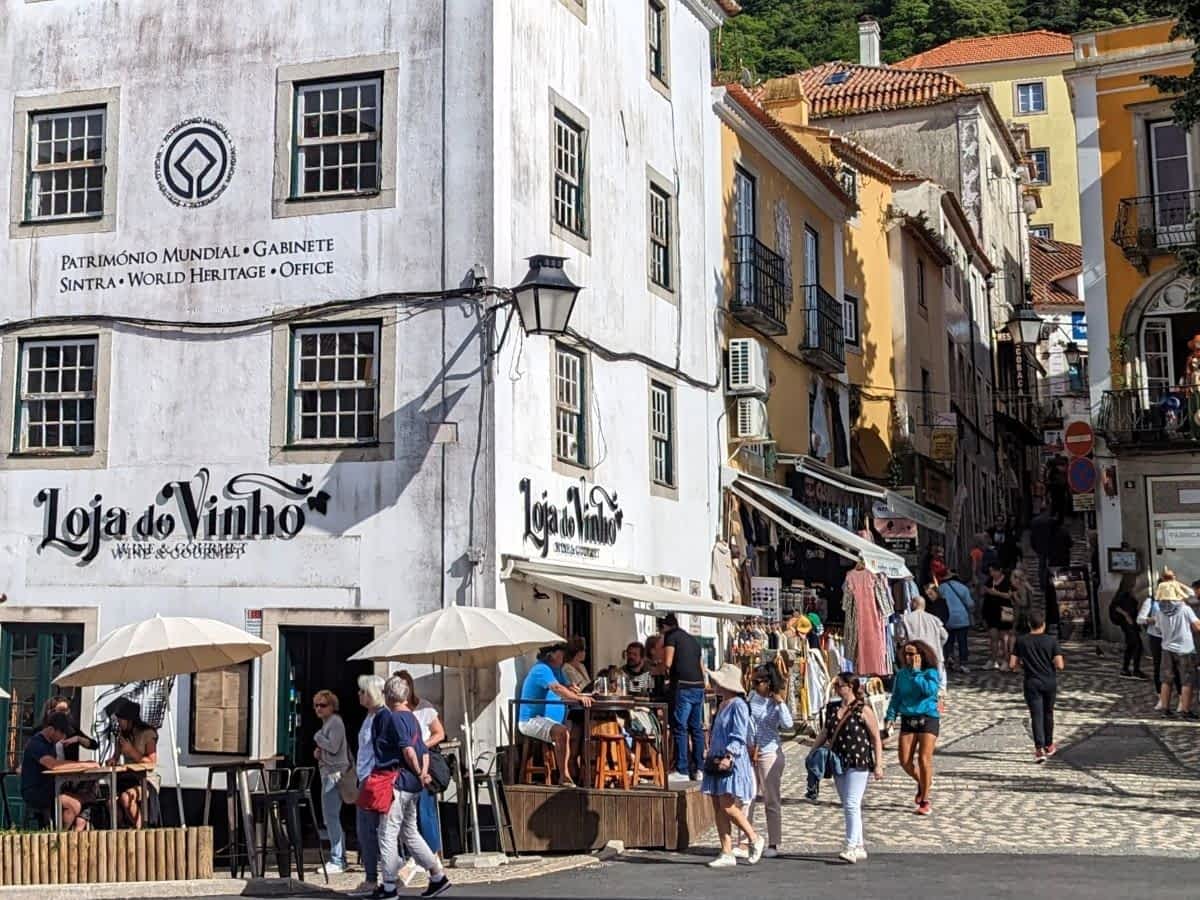 Offengestanden wussten wir nicht, was uns in Sintra erwartet: Was Neuschwanstein für Deutschland, ist Sintra für Portugal! Der Ort ist ein absoluter Ausflugs-Hotspot, entsprechend voll ist es. Die grünen Hänge sind gesäumt von prunkvollen Villen und Herrenhäusern, in den Straßen der Altstadt – die zum UNESCO-Welterbe gehört – gibt es zahlreiche Kunsthandwerk- und Antiquitätengeschäfte. Und über allem thront das Märchenschloss Palácio Nacional da Pena.